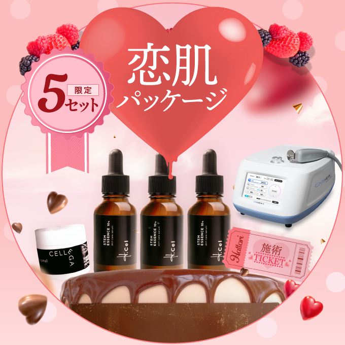 | 特徴 | 毎日のスキンケアで肌環境を整える「エイチセル」に、うるおいを守るセレーガゲル、さらに美容成分を効率よく届ける導入施術「ケアシス(レナトスTa)」をプラス。 乾燥やくすみが気になる季節に、なめらかでツヤのある“恋肌”を目指すバレンタイン限定プランです。 |