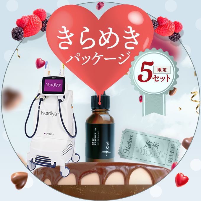 | 特徴 | 肌全体にやさしくアプローチする光治療「ノーリス IPL オパール」を2回受けられる特別パッケージに、美容成分を効率よく届ける「H.cel STEM ESSENCE 10%」を組み合わせた、 透明感を重視したバレンタイン限定ケア。 くすみが気になる肌を明るく整え、自然なツヤと澄んだ印象へ導きます。 |